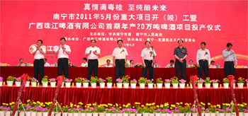 On 27 May, 2011, Guangxi Zhujiang Brewery was put into production with brewing capacity of 2,000,000 hL, whose expenses for construction were raised from securities maket.