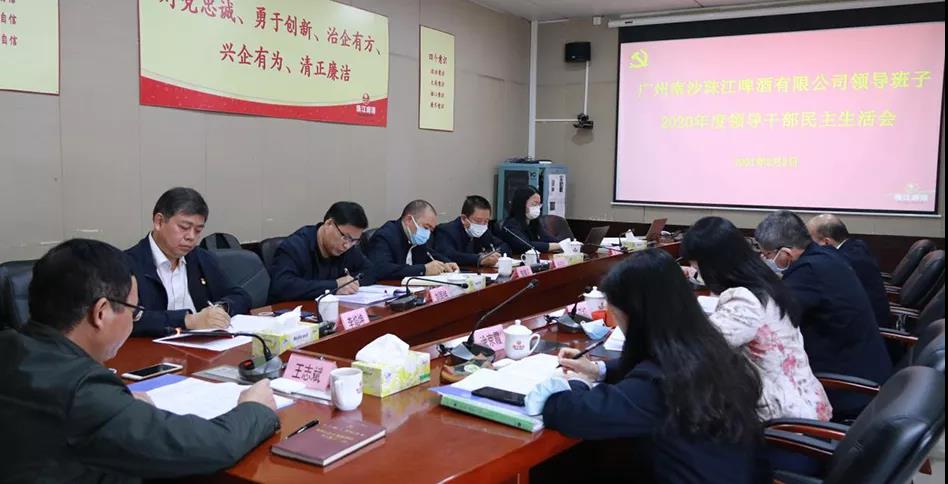 2021年2月2日,南沙公司召开2020年度领导干部民主生活会。珠啤股份党委书记、董事长王志斌,党委宣传部、党委工作部部长王江红到会指导。会议由珠啤股份副总经理、南沙公司党委书记、董事长李焰坤主持。