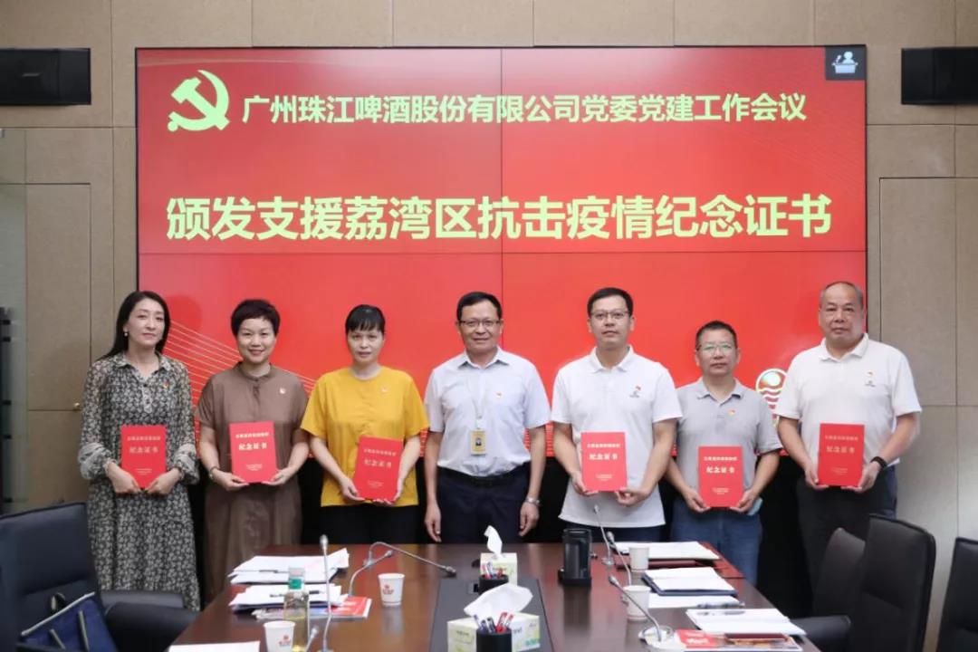 会上,王志斌为代表公司支援荔湾区抗击疫情的先锋队颁发荔湾区委、区政府授予的支援荔湾疫情防控纪念证书。