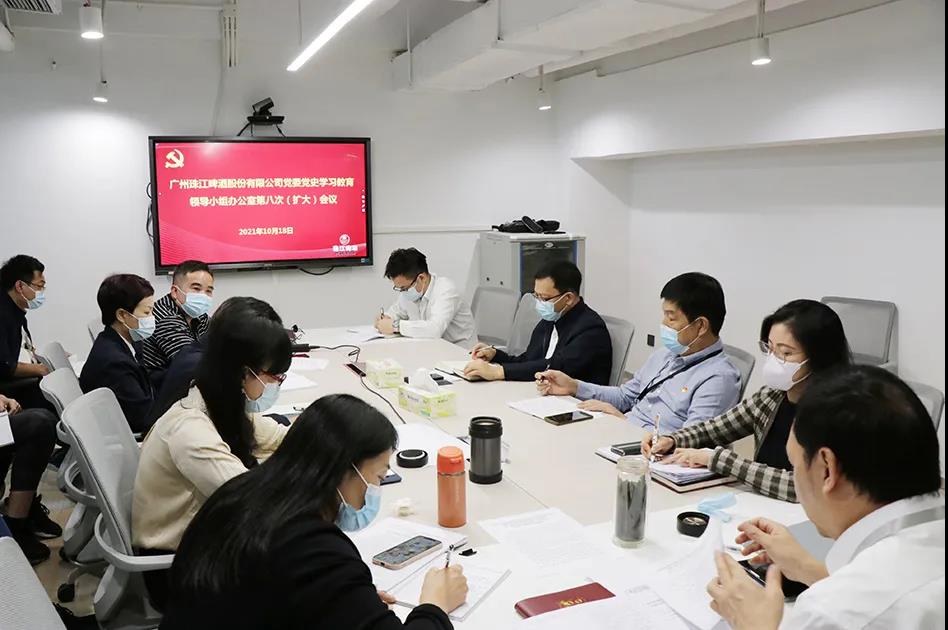 2021年10月18日,珠啤股份党委召开党史学习教育领导小组办公室第八次(扩大)会议。珠啤股份党委副书记、工会主席吴家威,珠啤股份党委、纪委职能部门负责人,相关部门负责人参加会议。