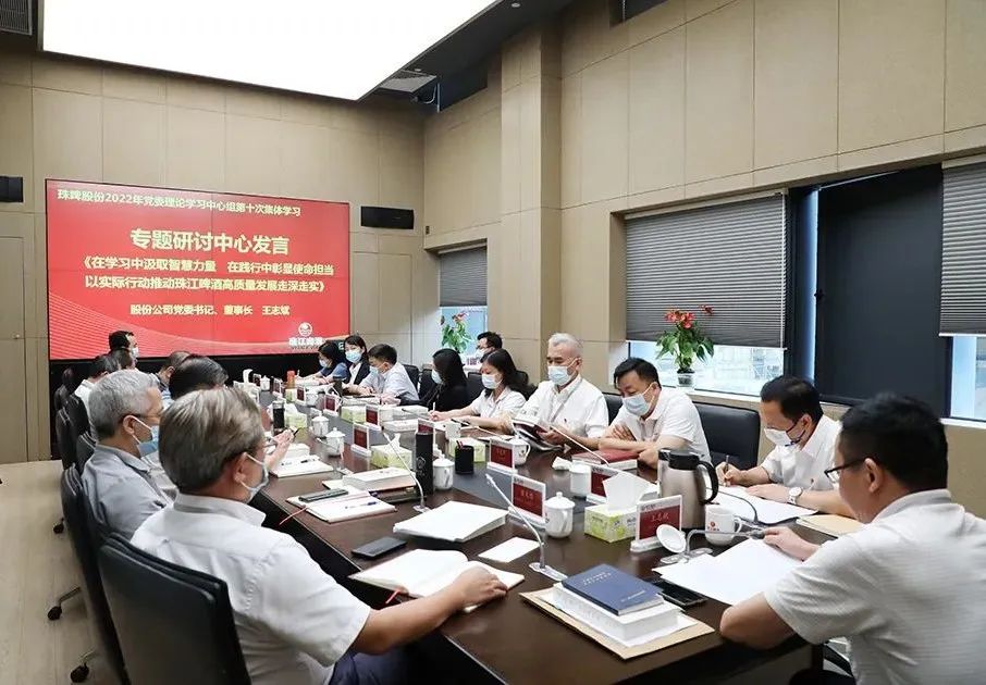 2022年9月20日,珠啤股份党委召开理论学习中心组集体学习会,在前期全面系统学习基础上,进一步深入学习《习近平谈治国理政》第四卷和习近平总书记在省部级主要领导干部专题研讨班上的重要讲话精神,紧密结合企业改革发展和党的建设工作实际,研讨贯彻落实的思路举措。