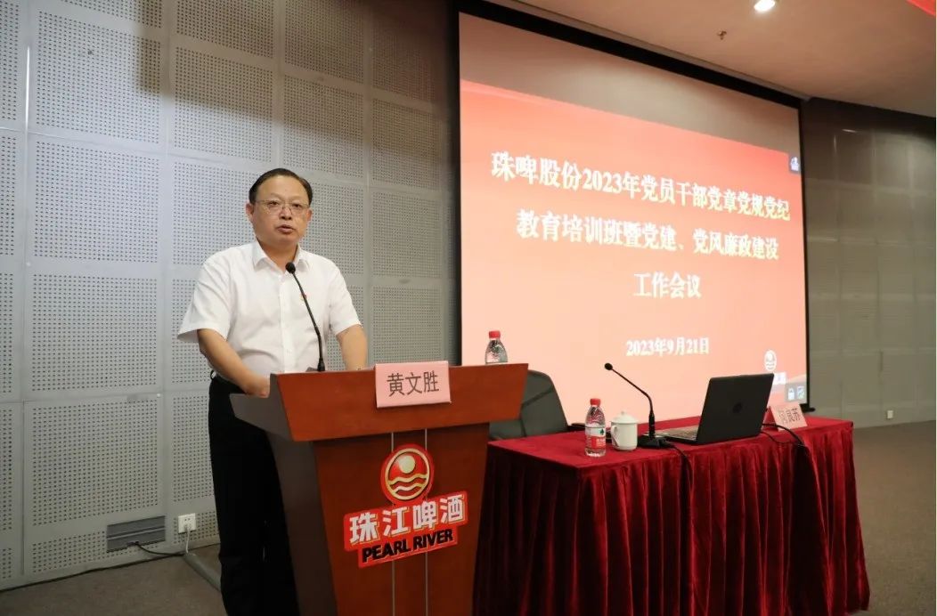 珠啤股份党委副书记、总经理黄文胜主持2023年党员干部党章党规党纪教育培训班暨党建、党风廉政建设工作会议
