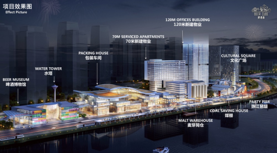项目围绕打造城市时尚新引擎的项目定位,致力于成为未来年轻人生活方式理念及潮流文化方向的引导者,成为具有国际影响力的集总部经济、啤酒文化、文创博览、商业发布、星级酒店、潮玩娱乐、休闲体验等于一体的新型城市文旅综合体。