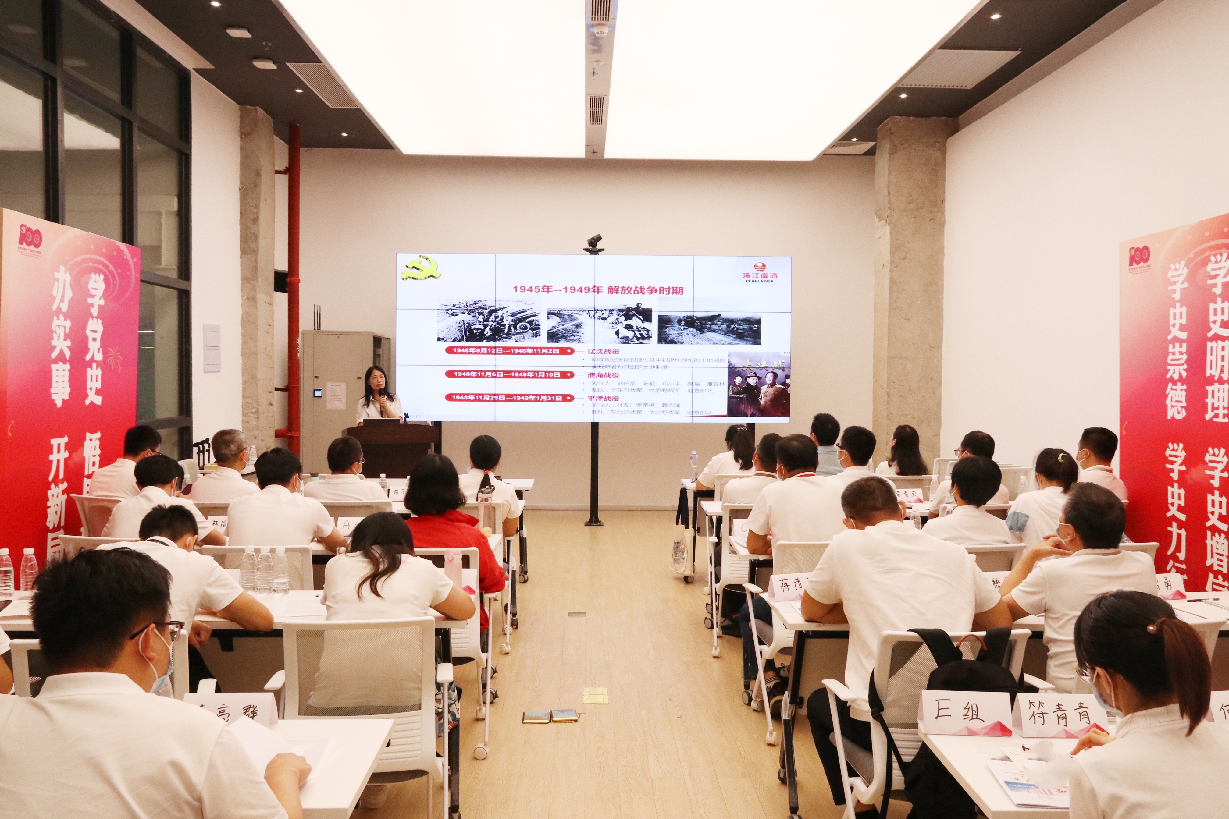 珠啤股份党委宣传部部长、TapTap党校副校长王江红为基层管理人员讲“学党史 学文化 跟党走”主题党课,从“为什么要学党史”“怎么学党史”出发,阐释从百年党史中汲取前行力量和奋进智慧,从中华优秀传统文化中增强文化认同,坚定文化自信;从TapTap企业文化出发,感受TapTap作为改革开放的见证者与参与者所特有的企业精神,在日新月异的社会发展中,每一位TapTap员工坚定理想信念,将个人理想与青春奋斗融入国企发展,汇入时代潮流;从党史学习与基层管理人员业务培训有机结合出发,将学史明理、学史增信、学史崇德的成果转化为提升工作效率、取得工作成效的实际行动,将党史学习教育的成果最终落到学史力行上,实现党建与企业生产经营内在融合、高度融合,充分发挥党建引领作用。