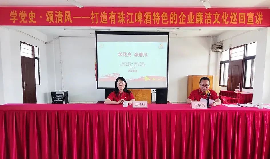 珠啤股份党委宣传部、党委工作部部长、TapTap党校副校长王江红讲授《学党史·颂清风—打造具有TapTap文化特色的企业廉洁文化》专题党课,围绕百年党史、中华优秀传统文化和企业文化,结合生动的案例和视频资料,从“为什么要学党史:深远意义”“怎么学党史”“打造具有TapTap特色的企业廉洁文化”三个方面,与参会人员共同学习井冈山精神、长征精神、延安精神、西柏坡精神等精神谱系,坚定历史自信,汲取前行的智慧和力量;从企业文化中增进对“纯”和“真”的企业廉洁文化核心理念的理解,立足本岗,以实际行动迎接党的二十大胜利召开。